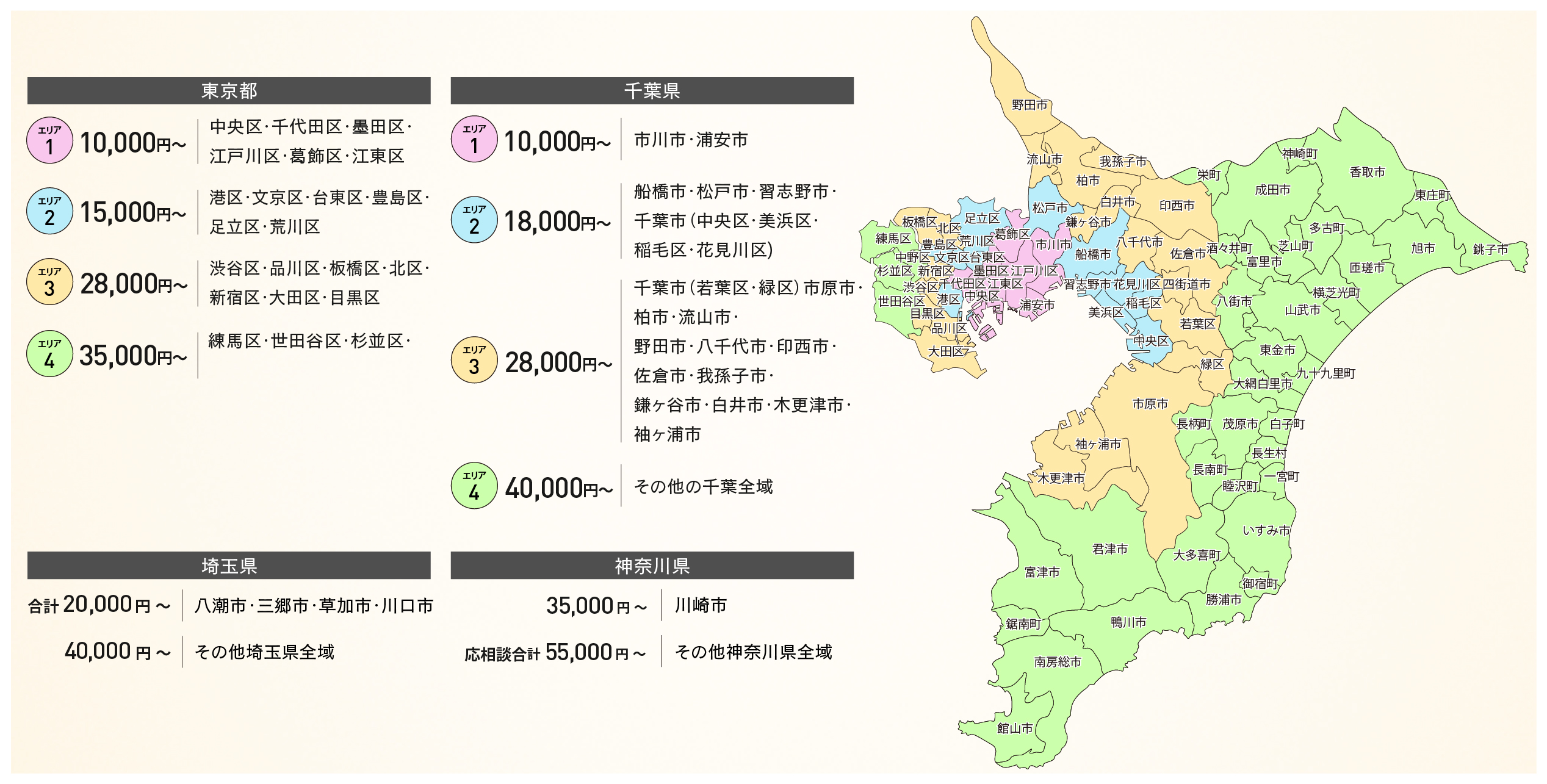 各エリア最低配達金額(税込)について教えてください。